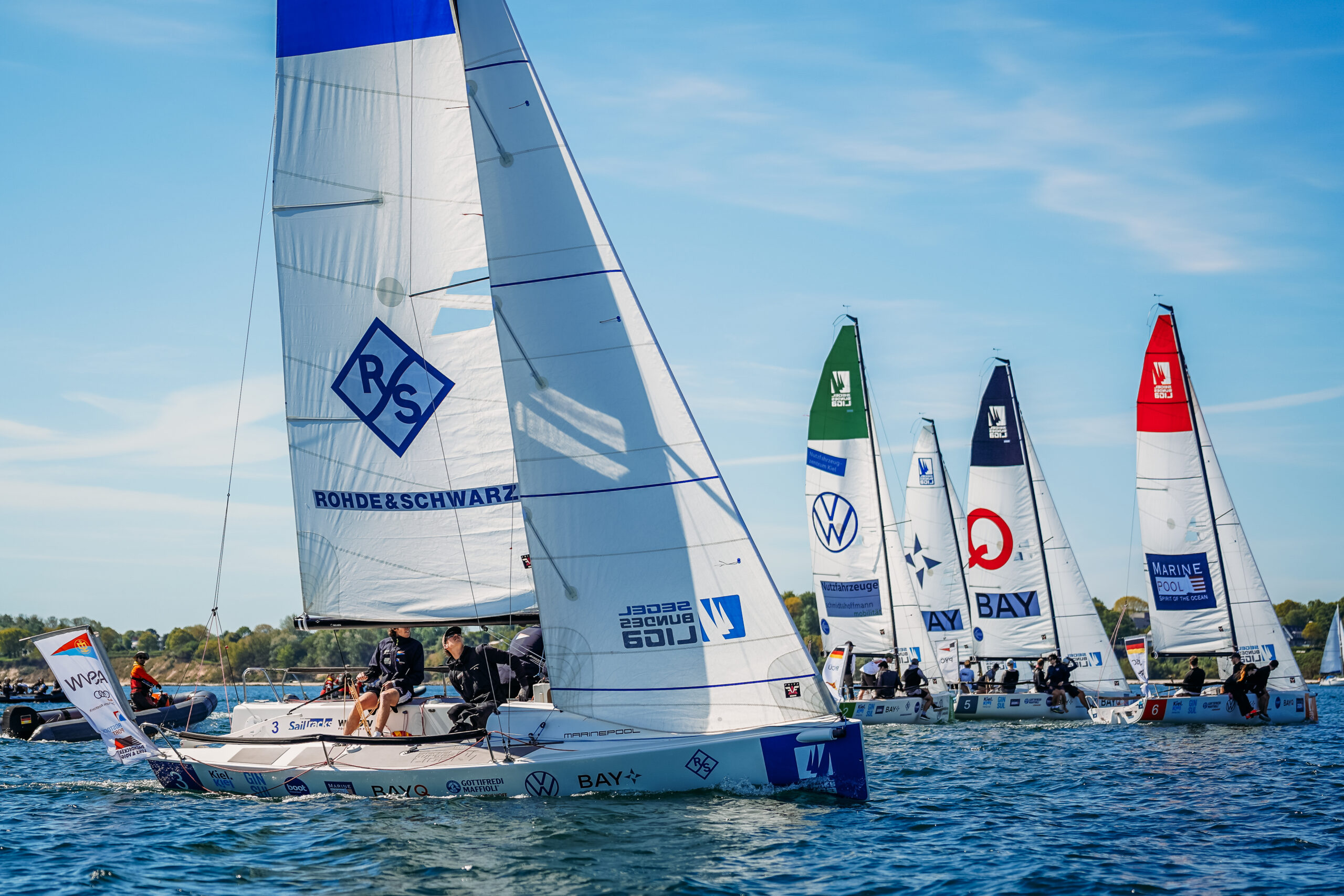 Nach drei Tagen Racing bei traumhaften Ostseebedingungen vor Kiel-Schilksee konnte das Team um Johannes Machur mit Paul Arp, Adrian Helbig und Luca Leidhold mit einem 7. Platz in die Saison einchecken. Dank intensiver Vorbereitung und Trainings am Olympiastützpunkt war die Crew bestens eingestellt für den ersten Spieltag. Das zahlte sich direkt aus: Nach dem ersten